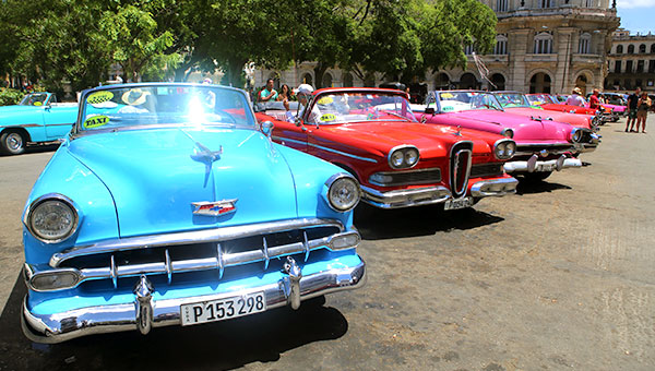 手付かずの美しい大自然に透き通る真っ青なカリブ海、アメリカン・クラシックカーにスペインコロニアル調の建造物。